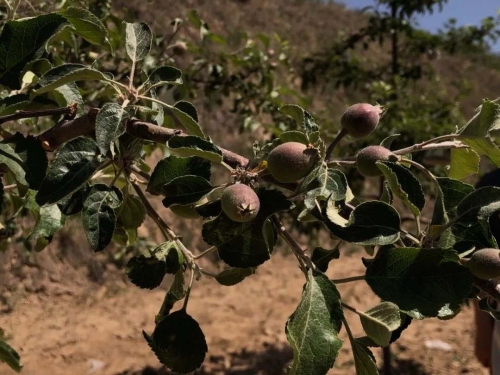 石山村秋樹畔組的農(nóng)民李建義看著剛剛被區(qū)技術員疏到地上的蘋果幼果,眼眶瞬間就紅了!