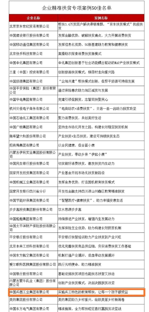 兵器工業(yè)集團教育扶貧獲評國務(wù)院扶貧辦2020年企業(yè)精準(zhǔn)扶貧專項案例“50佳” |