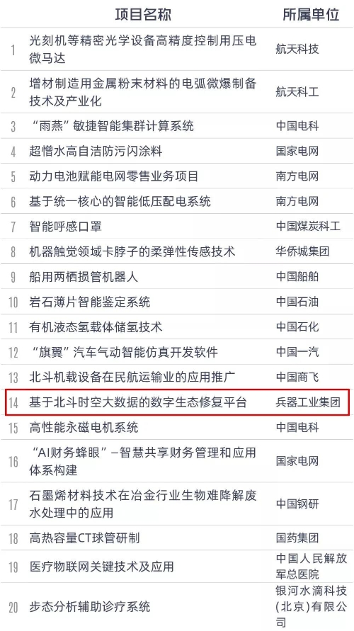 為落實(shí)黨中央、國務(wù)院關(guān)于加快實(shí)施創(chuàng)新驅(qū)動發(fā)展戰(zhàn)略、深入推進(jìn)大眾創(chuàng)業(yè)萬眾創(chuàng)新的決策部署,加快推動中央企業(yè)創(chuàng)新創(chuàng)業(yè)高質(zhì)量發(fā)展,國資委于2020年9月組織開展了第三屆中央企業(yè)熠星創(chuàng)新創(chuàng)意大賽。 大賽啟動以來,各中央企業(yè)積極組織參加,社會創(chuàng)新團(tuán)體踴躍參與,共3340個項目、2.3萬余人報名參賽。通過項目初選和復(fù)選,共有516個項目面向社會進(jìn)行了投資路演和對接,吸引眾多投資機(jī)構(gòu)和知名企業(yè)參與,達(dá)成一批合作意向。 經(jīng)總決賽評選,共評選出一等獎20項、二等獎30項、三等獎50項、優(yōu)秀獎100項,中國兵器工業(yè)集團(tuán)有限公司4個項目獲獎并榮獲“優(yōu)秀組織單位”。 兵器工業(yè)集團(tuán)獲獎項目 一等獎(1個) 基于北斗時空大數(shù)據(jù)的數(shù)字生態(tài)修復(fù)平臺(創(chuàng)意類) 三等獎(1個) 三合一北斗智能邊海防管控終端(創(chuàng)新類) 優(yōu)秀獎(2個) 基于北斗的鐵路工程測量創(chuàng)新應(yīng)用(創(chuàng)意類) 公共交通一體化智慧監(jiān)測系統(tǒng)(創(chuàng)新類) 完整獲獎名單 |
