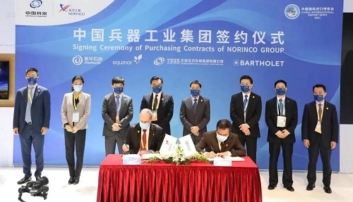 簽約金額再創(chuàng)新高,彰顯央企責任擔當。前三屆進博會,兵器工業(yè)集團采購簽約金額逐年增長,位于央企前列。本屆進博會期間,兵器工業(yè)集團交易分團精準對接采購需求,策劃豐富配套活動,繼續(xù)擴大采購規(guī)模,與美國、瑞士、英國、沙特等國簽約41個采購合同,采購總金額達322億元人民幣,同比增長4.5%,合同數(shù)量、金額均超前三屆,貿(mào)易和投資等合作渠道不斷拓寬,合作質量持續(xù)提升。11月5日,兵器工業(yè)集團在展區(qū)現(xiàn)場開展進口簽約活動,北方公司振華石油控股有限公司與挪威國家石油公司簽署原油長期采購合作備忘錄,并圍繞碳減排技術及排放配額交易等議題展開交流,為履行2030年前實現(xiàn)“碳達峰”、2060年前力爭實現(xiàn)“碳中和”目標貢獻力量。北京北方車輛集團有限公司與瑞士巴特萊集團簽署索道裝備采購合同,進一步拓展雙方長期友好合作的深度和廣度。11月6日,兵器工業(yè)集團在國家會展中心隆重舉辦現(xiàn)場采購簽約儀式,兵器工業(yè)交易分團與13個國家的20家外方企業(yè)開展主題采購簽約,集中簽約合同數(shù)量19個,金額達265億元。外方簽約伙伴包括沙特阿美石油公司、智利國營礦業(yè)公司、康明斯公司等全球知名企業(yè),采購產(chǎn)品類別涵蓋工業(yè)原材料、精密技術、智能裝備等三大板塊,彰顯了兵器工業(yè)集團的責任擔當。