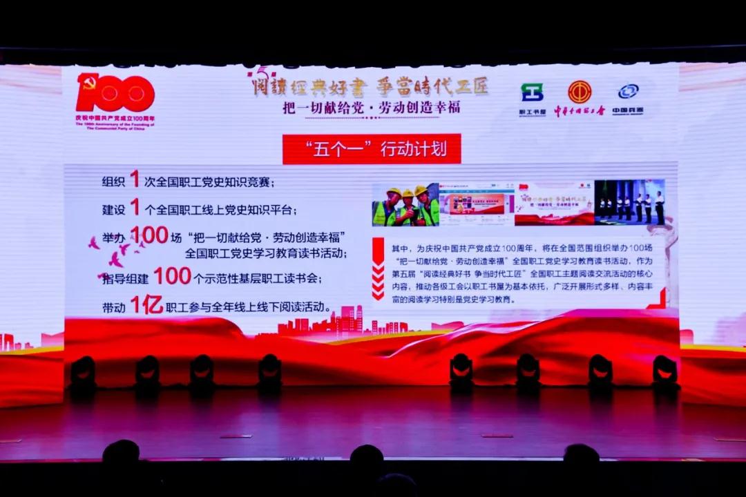 4月23日是第26個(gè)世界讀書日。在中華全國總工會指導(dǎo)下,全國工會職工書屋建設(shè)領(lǐng)導(dǎo)小組和中國兵器工業(yè)集團(tuán)有限公司共同舉辦了第五屆“閱讀經(jīng)典好書 爭當(dāng)時(shí)代工匠”全國工會職工書屋主題閱讀交流活動暨“把一切獻(xiàn)給黨·勞動創(chuàng)造幸福”全國職工黨史學(xué)習(xí)教育讀書活動啟動儀式。中華全國總工會黨組書記、副主席、書記處第一書記陳剛出席活動并講話,中國兵器工業(yè)集團(tuán)有限公司黨組書記、董事長焦開河致辭。陳剛向焦開河傳授活動火炬。全國總工會黨組成員、經(jīng)費(fèi)審查委員會主任、全國工會職工書屋建設(shè)領(lǐng)導(dǎo)小組組長李曉鐘,全國總工會兼職副主席高鳳林,中國兵器工業(yè)集團(tuán)有限公司黨組副書記周艦出席活動。 陳剛指出,持續(xù)在廣大職工中開展主題閱讀活動,是工會組織貫徹落實(shí)習(xí)近平總書記關(guān)于“要提倡多讀書,建設(shè)書香社會,不斷提升人民思想境界、增強(qiáng)人民精神力量”要求的具體行動。今年是中國共產(chǎn)黨成立100周年,黨中央要求在全社會開展黨史、新中國史、改革開放史、社會主義發(fā)展史宣傳教育。深入開展職工主題閱讀活動,并將之與黨史學(xué)習(xí)教育緊密結(jié)合,對于教育廣大職工緊跟共產(chǎn)黨、奮進(jìn)新時(shí)代,充分調(diào)動起億萬職工投身全面建設(shè)社會主義現(xiàn)代化國家新征程的熱情,具有十分重要的意義和作用。 陳剛強(qiáng)調(diào),要聚焦思想政治引領(lǐng),深入開展職工閱讀活動,與開展“中國夢·勞動美--永遠(yuǎn)跟黨走 奮進(jìn)新征程”主題教育活動有機(jī)結(jié)合,引導(dǎo)廣大職工堅(jiān)定不移聽黨話、跟黨走。要把開展職工閱讀活動作為深化產(chǎn)業(yè)工人隊(duì)伍建設(shè)改革、提高職工整體素質(zhì)的重要途徑,培養(yǎng)職工良好的閱讀學(xué)習(xí)習(xí)慣,造就更多高素質(zhì)技術(shù)技能人才、能工巧匠、大國工匠。要聚合平臺陣地優(yōu)勢,推動職工書屋與工人文化宮、職工服務(wù)中心等工會服務(wù)場所及網(wǎng)絡(luò)平臺陣地融合發(fā)展,堅(jiān)持職工為本、貼近基層,突出公益性、服務(wù)性,實(shí)現(xiàn)創(chuàng)新升級,不斷激發(fā)活力,打造億萬職工文化家園。要引導(dǎo)職工求知善讀,博學(xué)精進(jìn),勵學(xué)敦行,共同譜寫勞動光榮的華彩樂章,匯聚團(tuán)結(jié)奮進(jìn)的強(qiáng)大正能量。