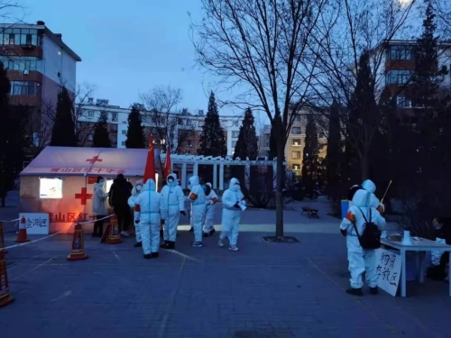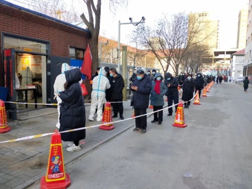 當(dāng)前,內(nèi)蒙古自治區(qū)疫情防控形勢(shì)依然嚴(yán)峻,包頭市中風(fēng)險(xiǎn)地區(qū)已達(dá)7個(gè)。面對(duì)疫情,中國(guó)兵器工業(yè)集團(tuán)有限公司駐包頭單位積極行動(dòng),支援當(dāng)?shù)匾咔榉揽?,共筑安全防線。 凌晨集結(jié),投身核酸檢測(cè)工作 來(lái)自一機(jī)集團(tuán)、北重集團(tuán)、材料院52所包頭事業(yè)部的共計(jì)500余名志愿者密切配合包頭市防疫部門(mén)、街道社區(qū)進(jìn)行全員核酸檢測(cè),同時(shí)做好信息登記、維護(hù)秩序、宣傳政策等工作,確保核酸檢測(cè)全覆蓋。2月20日凌晨,在零下20度的寒風(fēng)中,志愿者全部在支援地集結(jié)到位,做好核酸檢測(cè)前的相關(guān)準(zhǔn)備。 一機(jī)集團(tuán)黨員突擊隊(duì) 志愿者們搭建臨時(shí)帳篷,用圍擋封控家屬區(qū),配合醫(yī)護(hù)人員組織居民排隊(duì),有序進(jìn)行核酸檢測(cè)。檢測(cè)工作開(kāi)始后,志愿者們用溫暖的話語(yǔ)安撫居民們的情緒,引導(dǎo)居民有序入場(chǎng),檢測(cè)居民體溫,登記核對(duì)信息,轉(zhuǎn)運(yùn)檢測(cè)樣本。為了盡可能提高檢測(cè)工作效率,志愿者在各條核酸檢測(cè)通道指導(dǎo)群眾掃碼登記,一對(duì)一幫助老人、兒童等不便使用智能手機(jī)的群眾解決困難,使其能順利進(jìn)行核酸檢測(cè)。 逐戶上門(mén),確保應(yīng)檢盡檢 為確保所支援地區(qū)完成全員核酸檢測(cè)工作,志愿者自愿組隊(duì),挨家挨戶上門(mén)通知,進(jìn)行人員核對(duì),對(duì)于處在隔離期的居民以及行動(dòng)不便的老人、兒童采取了入戶核酸檢測(cè)。