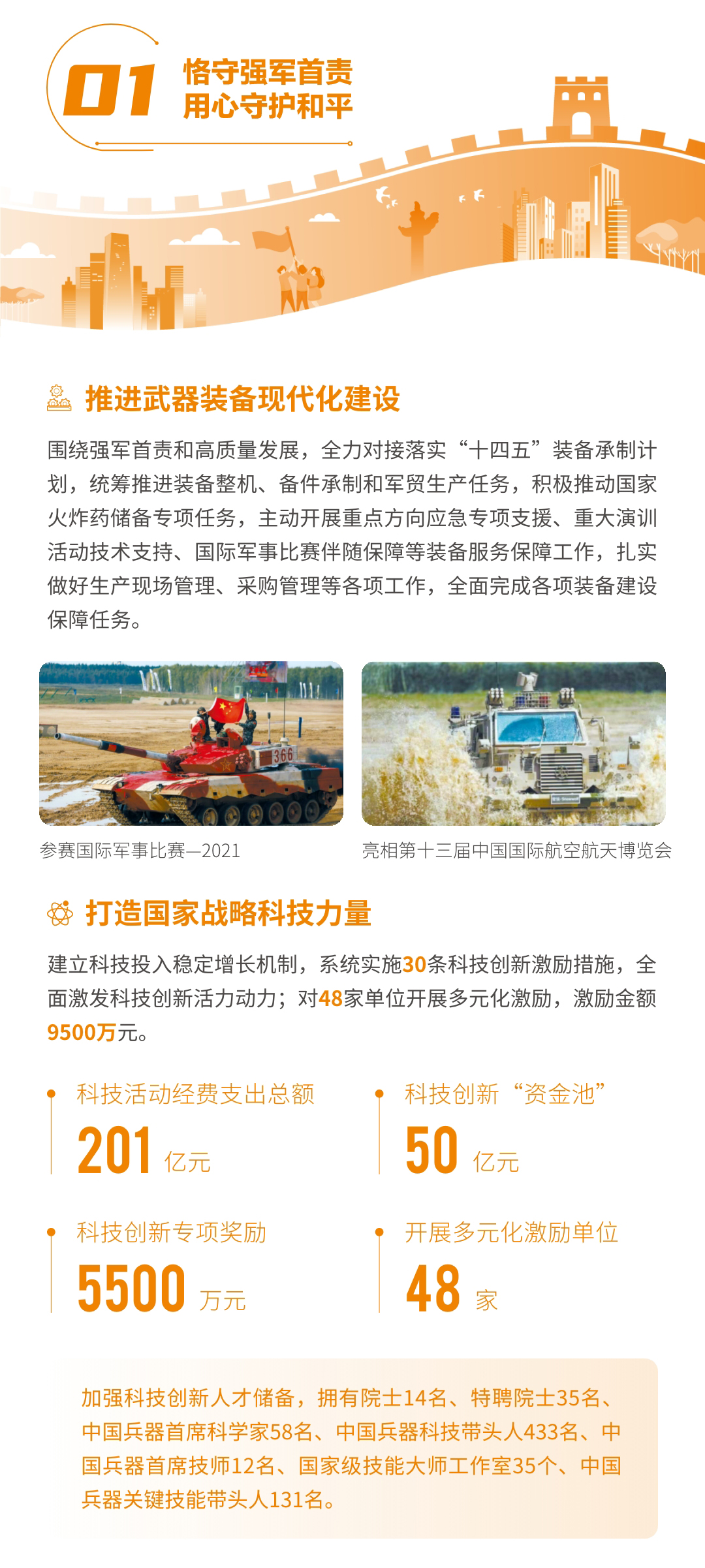 近日,兵器工業(yè)集團(tuán)正式發(fā)布第十三份年度社會(huì)責(zé)任報(bào)告——《中國(guó)兵器工業(yè)集團(tuán)有限公司2021年社會(huì)責(zé)任報(bào)告》,以“用心守護(hù)和平、用力爭(zhēng)創(chuàng)一流、用情溫暖社會(huì)”為主題,從恪守強(qiáng)軍首責(zé)、服務(wù)經(jīng)濟(jì)建設(shè)、共創(chuàng)美好生活三個(gè)維度,向社會(huì)全面披露2021年度履責(zé)實(shí)踐和履責(zé)業(yè)績(jī)?!秷?bào)告》連續(xù)第三年獲得中國(guó)企業(yè)社會(huì)責(zé)任報(bào)告評(píng)級(jí)專家委員會(huì)“五星佳”評(píng)級(jí),兵器工業(yè)集團(tuán)成為軍工行業(yè)唯一連續(xù)11年獲得五星及五星佳最高評(píng)級(jí)的企業(yè)。 一圖解碼兵器工業(yè)的“責(zé)任力量” |