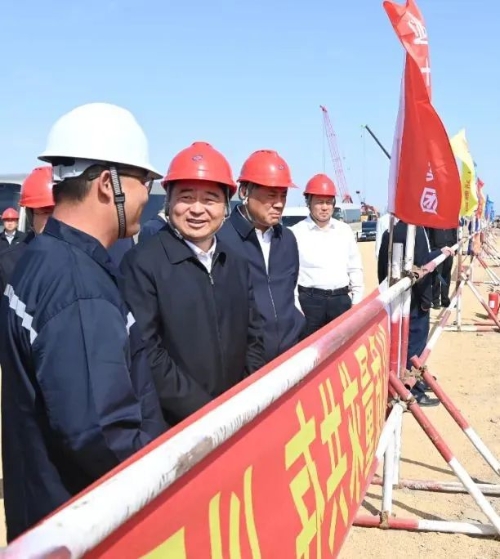 10月6日,遼寧省委書記、省人大常委會主任郝鵬在中國兵器工業(yè)集團(tuán)有限公司總經(jīng)理、黨組副書記劉大山的陪同下到北方華錦聯(lián)合石化有限公司調(diào)研。郝鵬一行深入精細(xì)化工及原料工程項(xiàng)目施工現(xiàn)場,向在場的施工建設(shè)者們致以親切慰問,實(shí)地察看了原油罐樁基區(qū)施工現(xiàn)場、地管作業(yè)區(qū),在主干地管施工三標(biāo)段項(xiàng)目部,聽取項(xiàng)目安全標(biāo)準(zhǔn)化、質(zhì)量標(biāo)準(zhǔn)化、施工標(biāo)準(zhǔn)化建設(shè)情況匯報(bào)。遼寧省委常委、省政府副省長王健,遼寧省委常委、秘書長姜有為,集團(tuán)公司黨組成員、副總經(jīng)理閆哲參加調(diào)研。