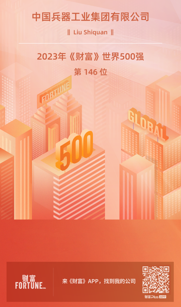 8月2日,2023年《財富》世界500強排行榜正式發(fā)布,中國兵器工業(yè)集團(tuán)有限公司以826.89億美元的營業(yè)收入排名第146位,連續(xù)第14年入榜。