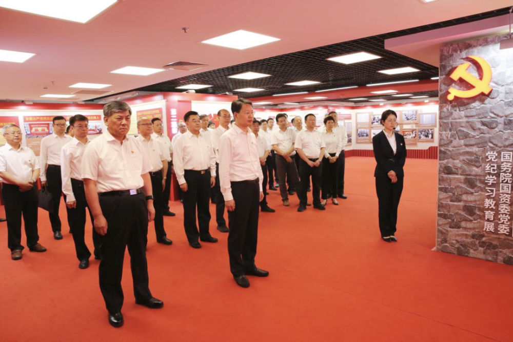 黨組同志認真聆聽講解,集體參觀了“政治鑄魂——習近平總書記重要論述”“紀法樹威——黨規(guī)黨紀相關要求”“傳承增信——黨的優(yōu)良傳統(tǒng)”“嚴管促行——國務院國資委黨委紀律建設成效”“警示立戒——反面典型案例”“實干建功——工作展望”6個篇章,通過觀看圖文、視頻等形式多樣的展品展示,進一步學習領會習近平總書記關于國資央企的重要指示批示精神和黨的紀律建設的重要論述,學習把握《中國共產(chǎn)黨紀律處分條例》新增、修訂內(nèi)容,全面了解國務院國資委黨委強化政治引領、加強政治監(jiān)督、深化紀律建設、抓實巡視工作等方面的做法舉措,集中觀看近年來國資央企發(fā)生的具有代表性的違規(guī)違紀案例,深刻領悟以習近平同志為核心的黨中央堅持黨要管黨、全面從嚴治黨取得的歷史性成就,全面感受國務院國資委黨委全面從嚴治黨取得的重要成果。
