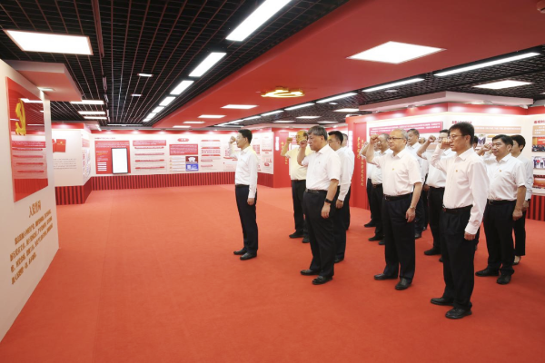 參觀后,程福波帶領大家面向黨旗重溫入黨誓詞。(兵宣)