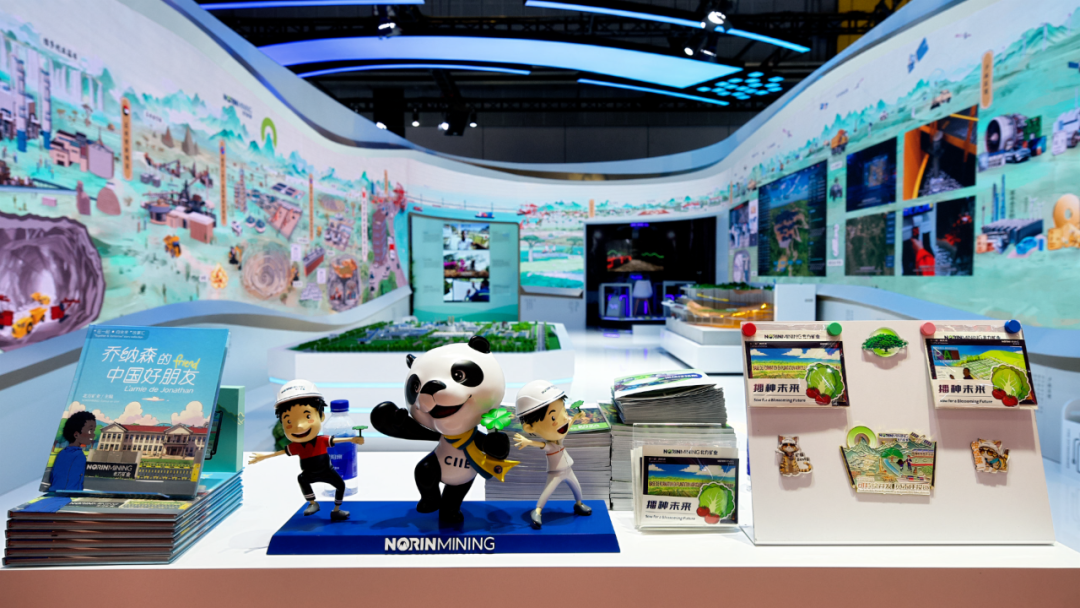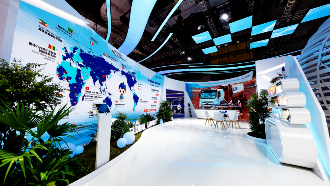 北方礦業組展展區以《千里江山圖》為創意,生動呈現了六個海外項目及礦產品貿易業務,全方位展示了智慧礦山核心構成,演繹“綠水青山就是金山銀山”的礦業新篇。