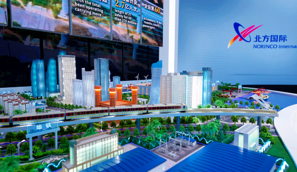 北方國際組展展區創新使用5D穹幕電影、UI互動屏幕、2.5D墻上沙盤等手段,綜合展示國際化經營與共建“一帶一路”的豐碩成果,尤其是在電力全形態領域的投資及工程服務領域的專業能力,圍繞礦產資源的全產業鏈一體化工程服務水平以及軌道交通等領域以系統集成為核心的國際工程承包業務。