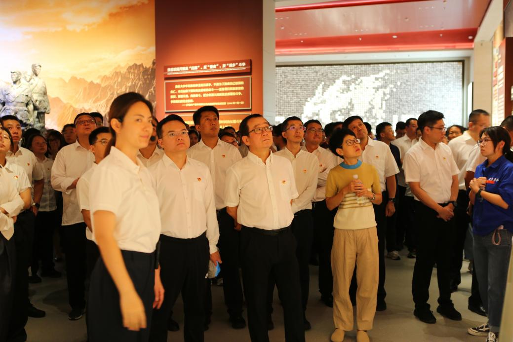 參觀過程中,黨員干部職工代表認真聆聽講解,深入了解抗戰歷史,在一張張照片、一件件文物面前駐足深思,深切感痛日本帝國主義給中國人民造成的巨大苦難、在中國土地上犯下的滔天罪行;重溫抗日先輩團結一致、血戰到底的英雄氣概,視死如歸、寧死不屈的民族氣節,百折不撓、堅韌不拔的必勝信念;深刻認識到中國共產黨在全民族抗戰中發揮的中流砥柱作用,正是因為有了中國共產黨的堅強領導,中國人民才走上強國建設、民族復興的新征程。